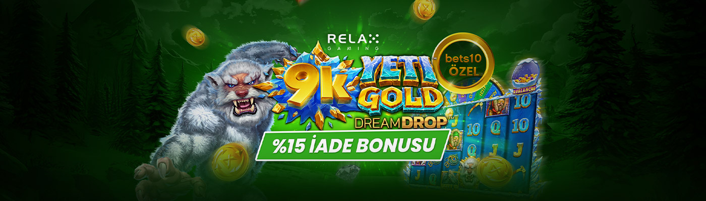 • İade Bonusu, kullanıcının kampanyaya katıldığı andan yukarıda belirtilen kampanya bitiş tarihine kadar 9K Yeti Gold Dream Drop slotunda oluşan net kayıpların %15 oranı olarak hesaplanır.
